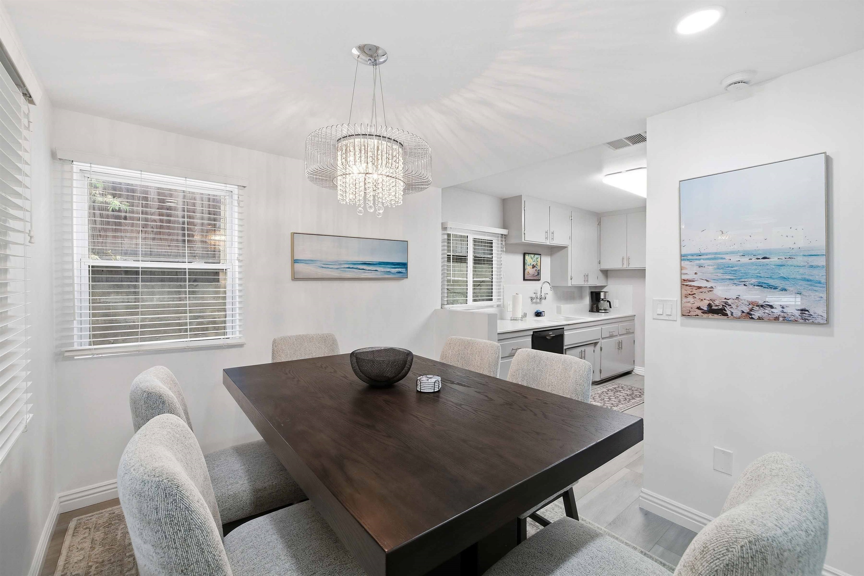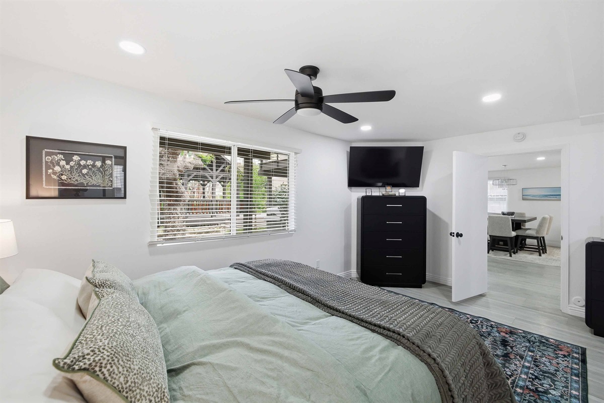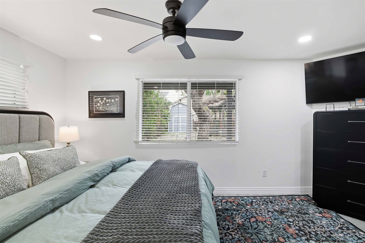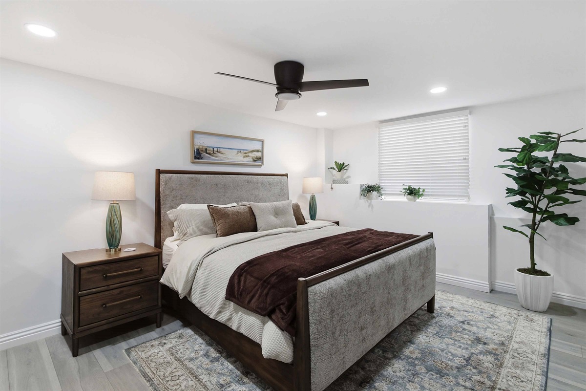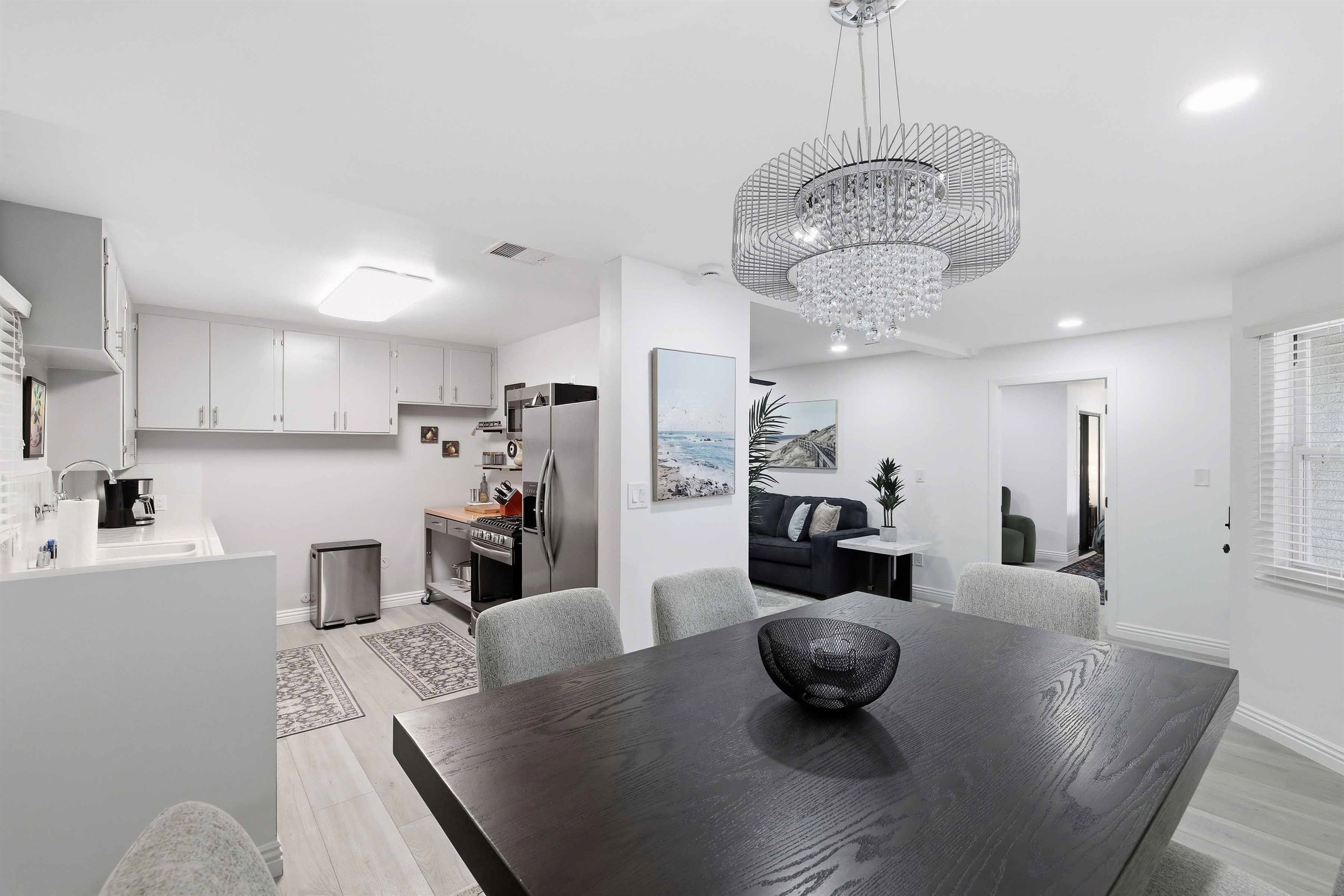 Beautifully remodeled 2-Bed (1-King & 1-California King) 2-Bath lower-rear unit with 850 Sq. Ft. of bright, comfortable living space on a quiet street with air conditioning! This single-level apartment features an open kitchen, stylish chandelier/furnishings, & a great flow throughout.