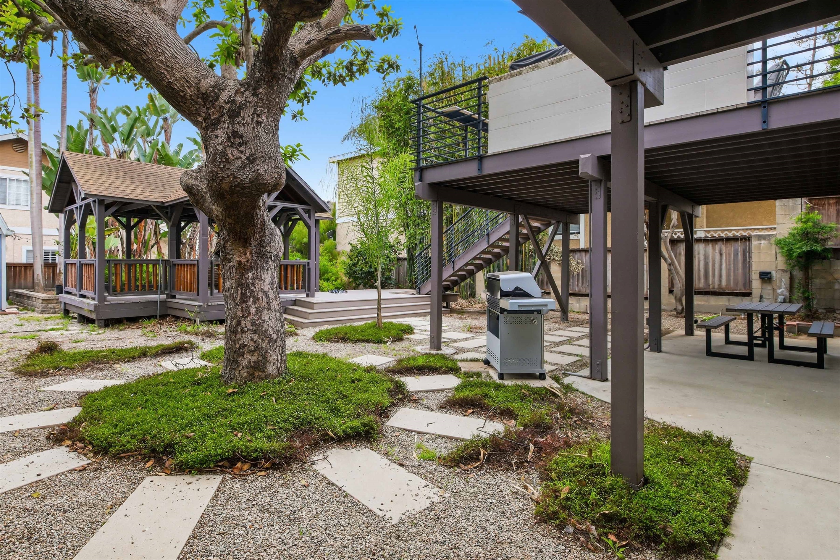 Step outside to your large yard/gazebo (shared) & private patio, perfect for relaxing or entertaining, equipped with a BBQ + dining area for six. Inside enjoy updated bathrooms, a walk-in closet, pantry, ceiling fans, & the convenience of in-unit laundry + easy parking with your own 1-car driveway space (Left Side).
